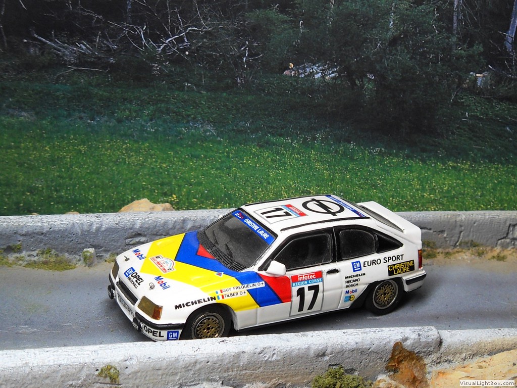 In der französischen Rallye Tour de Corse wurde der GSi mehrfach eingesetzt. Der Bausatz stammt von Starter, wurde von homburgmodell zusammengebaut und zeigt die Version mit den französischen Fahrern Guy Frequelin und Tilber